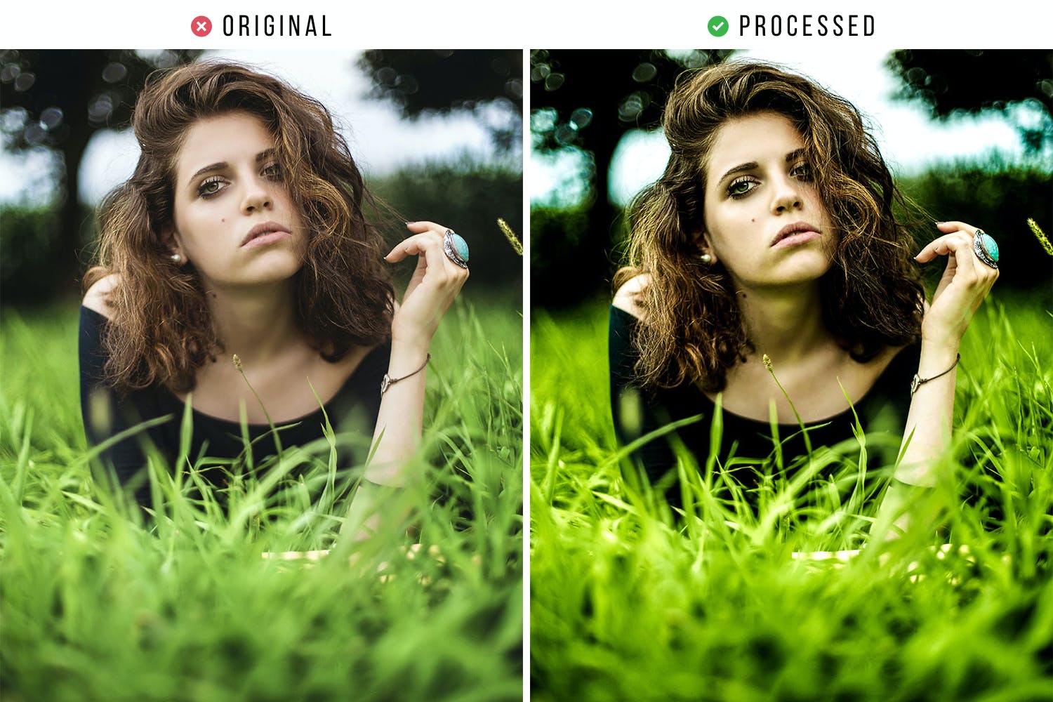 绿色滤镜效果色调PS动作&LR预设素材,旨在打造一种引人注目的锐利外观,与众不同,打造独特的流畅风格,关注不同的色调。这些滤镜用途广泛,可以处理很多不同的图片,比如时尚、生活方式、博客,甚至是喜怒无常的产品照片。下载包含ATN和XMP格式的文件。